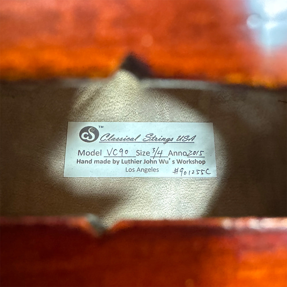 A refined, handmade cello for advancing students. The Classical Strings VC90 (3/4 size) is crafted by individual makers in John Wu’s Beijing workshop on an Antonio Stradivari 1716–style pattern. A selected Alaskan spruce top pairs with flamed European maple back and ribs for a tone that’s warm, broad, and confidently projecting—ideal for orchestra, chamber music, and auditions. The instrument receives its hand-rubbed varnish finish in the maker’s Los Angeles workshop, adding a classic look with tasteful shading.