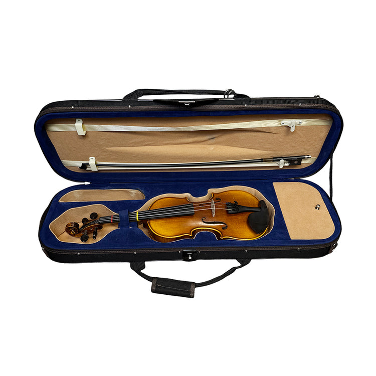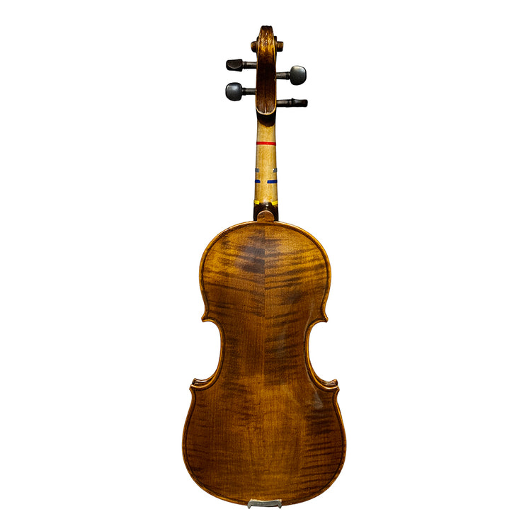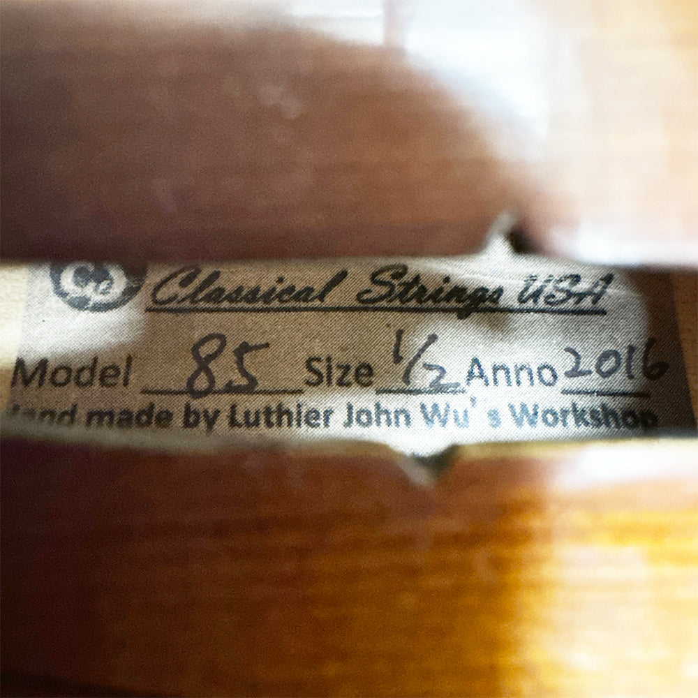 A refined, handmade violin for growing players. The Classical Strings VL85 (1/2 size) is crafted on an Antonio Stradivari 1715–style pattern and built by Vince Chen in Luthier John Wu’s Beijing workshop. With a European spruce top and a two-piece, highly flamed Russian maple back, this VL85 speaks with clear projection, warm resonance, and quick response—an excellent step-up choice for intermediate to advanced students. The oil-based Cremona-style bright reddish-orange varnish adds a classic look while letting the wood ring freely.