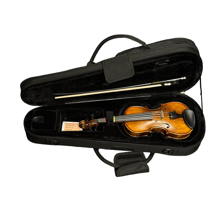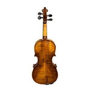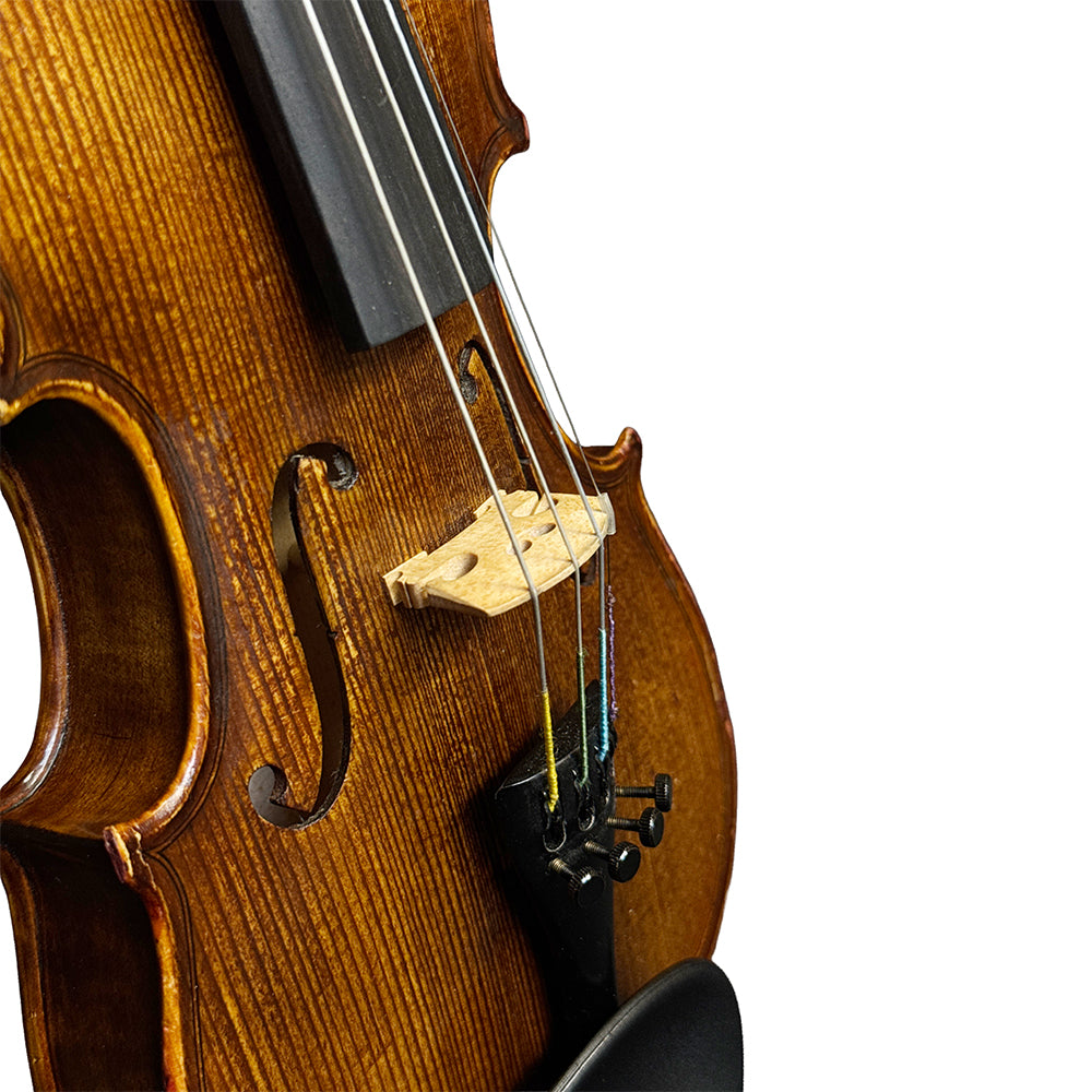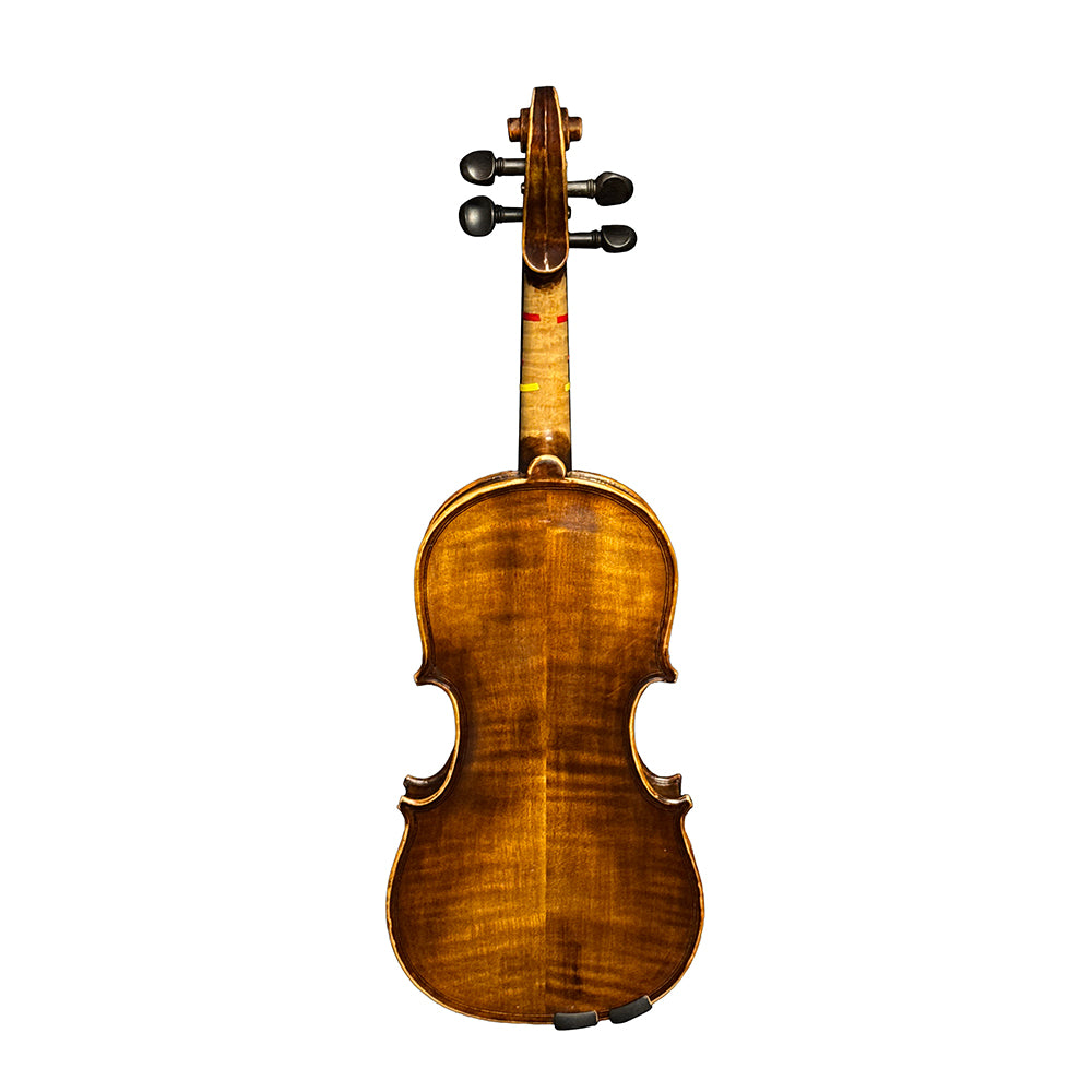 A refined, handmade violin for growing players. The Classical Strings VL85 (1/8 size) is crafted on an Antonio Stradivari 1715–style pattern and built by Vince Chen in Luthier John Wu’s Beijing workshop. With a European spruce top and a two-piece, highly flamed Russian maple back, this VL85 speaks with clear projection, warm resonance, and quick response—an excellent step-up choice for intermediate to advanced students. The oil-based Cremona-style bright reddish-orange varnish adds a classic look while letting the wood ring freely.