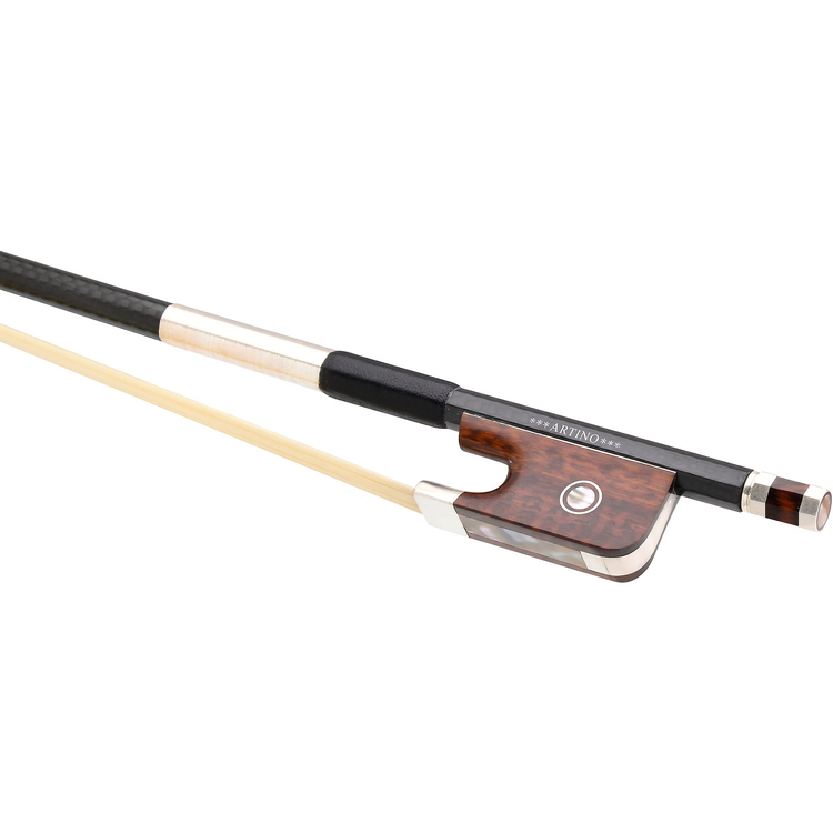 This three-star carbon fiber stick offers superior response with excellent balance. Featuring a fully lined silver mounting, snakewood frog with Parisian eye, plus a silver and leather grip. This bow is a must-have for your instrument.