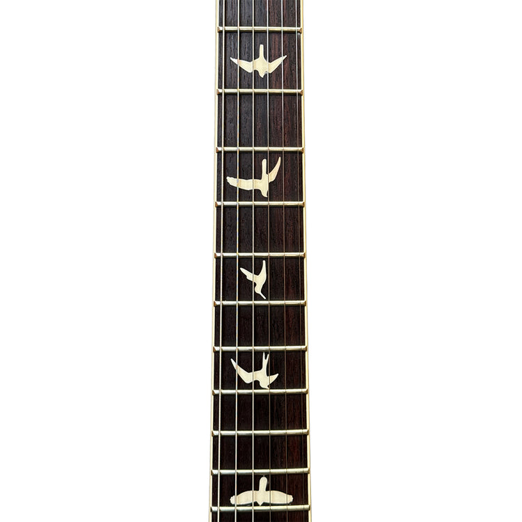 The PRS S2 McCarty Singlecut 594 features a Pattern Vintage profile mahogany neck with a gloss finish, offering a silky, relaxed handfeel that will enhance your playing experience. The 24.594-inch scale length, which is the source of the “594” in the model name, ensures maximum performance and comfort while playing. The rosewood fingerboard with 10-inch radius and Birds inlays completes the guitar's elegant look.