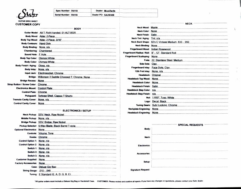 - Classic T-style hardware with Suhr Chopped Classic T bridge