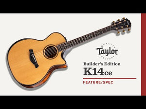 Crafted to deliver an ultra-refined playing experience with tone and comfort to match, the Taylor K14ce Builder's Edition is a Grand Auditorium acoustic-electric guitar designed to the exacting preferences of master guitar designer Andy Powers. With its solid, beautifully grained Hawaiian koa back and sides, the guitar produces warm lows and crisp, clear treble notes. The specially roasted spruce top adds a bit of aged sweetness. Builder's Edition special features include a beveled armrest and cutaway, chamfered body and fretboard edges, and a Silent Satin finish, all complemented by the artful Spring Vine inlay. The Taylor K14ce Builder's Edition ships with ES2 electronics and a deluxe hardshell case.