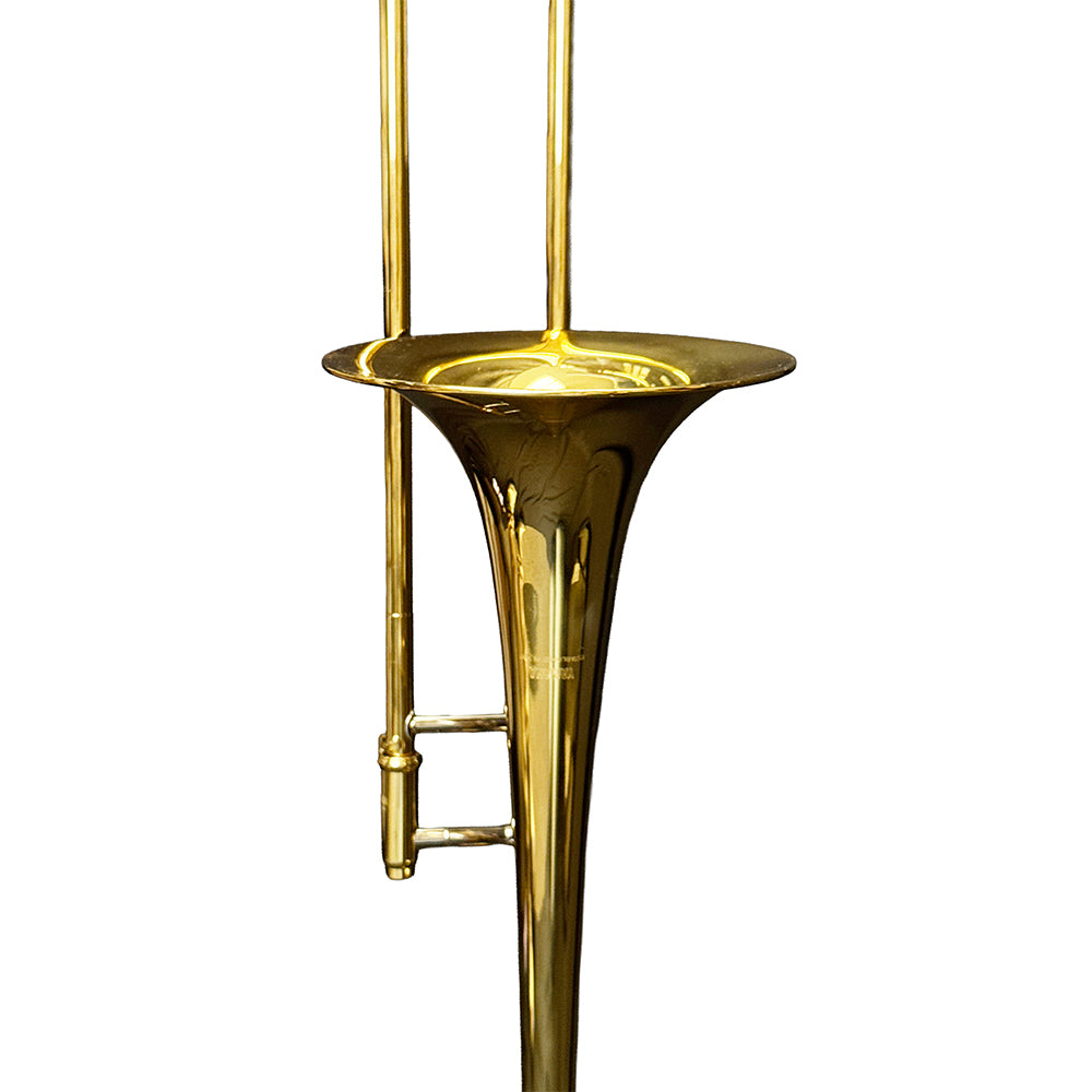 The Yamaha YSL-354 Standard Trombone was designed to make it easier for beginning students to sound good as soon as possible. The Yamaha YSL-354 is produced with similar specifications and manufacturing processes used in top professional trombones. This Yamaha trombone offers a yellow brass bell designed for excellent response and tone, while the handslide features a yellow brass outer slide and nickel-silver inner slide for fast, smooth action. The YSL-354 trombone is available in gold lacquer or silver plate finish and includes a case and Yamaha 48S small shank mouthpiece.
