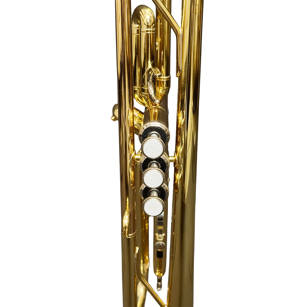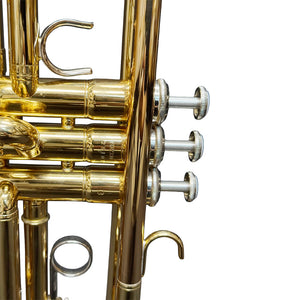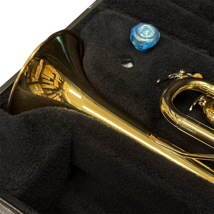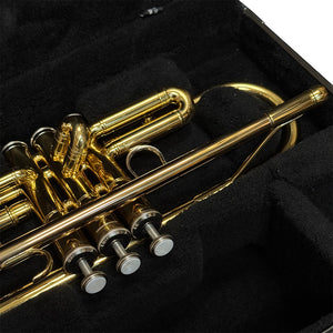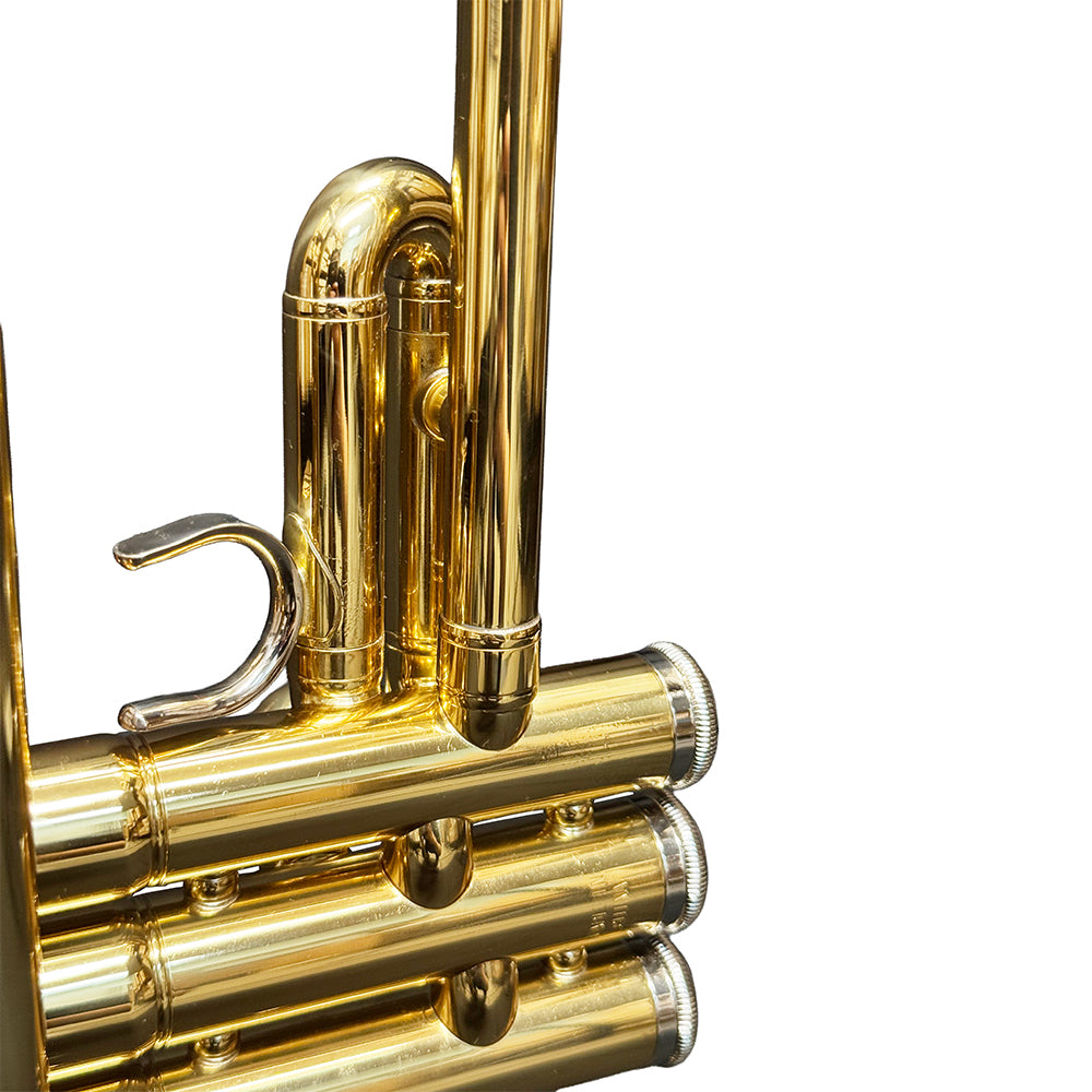 A band-director favorite, the Yamaha YTR-2330 is a student Bb trumpet designed for easy response, stable intonation, and day-to-day durability. A gold-brass leadpipe and .459" bore deliver comfortable breath resistance with a focused, colorful sound, while smooth, rugged monel alloy valves keep the action quick and reliable. The lightweight 2-piece, 4.9" yellow-brass bell helps new players hold proper posture and play longer with less fatigue. Finished in gold lacquer for a warm look and sound, the YTR-2330 is a proven first trumpet that supports real musical growth.